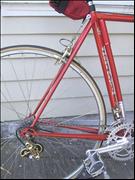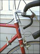 The C-37 was Bertin's top model for many years. They were produced from the late 1960s into the 1980s. C-37 referred mote to the Reynolds 531 frame than the actual bike model. I've seen factory equipped C-37s with everything from Huret Alvit derailleurs to full Campy gruppos. This particular bike is a C-37bis ('bis' in this case meaning light weight). Bertin introduced the C-37bis with all top end French components in the late 70s. It was their "team model" bike. The original bikes were built with Super Vitus 971 tubing which was similar to Columbus SL in weight and ride. This 1980 C-37bis has Super Vitus 971 stickers but the 3 main tubes are made of the lighter Super Vitus 980. It came with gold anodized Mafac Competition brakes and Simplex Super LJ derailleurs. It's a very light bike and with sewups and other wise equipped as pictured weighed under 20 lbs. |