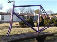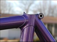 This is a 1984 frame, Serial # A338-525. The frame is built from Ishiwata 019 double-butted chrome-moly tubing (.8/.5/.8) main tubes, except for Ishiwata 022 (.9/.6/.9) down tube. Head tube is Ishiwata 019 (1.0), fork blades are Ishiwata 019 (1.0), and chainstays are Ishiwata 019 (.8). Handcut and thinned Tange Champion lugs, Shimano EF fork ends and droputs, Ohtsuya investment cast bottom bracket, 3Rensho investment cast (offset) fork crown, and 3Rensho investment cast seat stay caps. Fork and crown are fully chromed (under repaint). Frame size is 52.5, and the angles are 73/74.