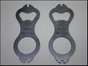 There are at least two variants of this tool. The one on the left is made of thinner stock and weighs 22g whereas the one on the right weighs 28g. The outlines are the same, but a small difference between the two is noticeable in the shape of the spoke wrench slots and the bottle opener. |