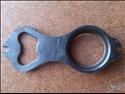 This is the famed and elusive tool used for removing and installing the splined lock ring which holds a helicomatic freewheel to the hub. While channel-lock pliers may be just as effective for that, they don't include the handy 14- and 15-guage spoke wrenches and, more importantly, the ever-useful beverage wrench. Viva la France!