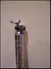 The pump pictured is the non-frame fit variation. It was used with a pump clip, like the Campy Umbrella pump clip. There was a later frame-fit variation with a concave handle end that was sprung to hold itself under the bottom of the top tube. It required no pump clip. Both varieties came in an assortment of lengths. |