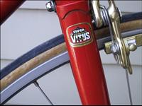 The C-37 was Bertin's top model for many years. They were produced from the late 1960s into the 1980s. C-37 referred mote to the Reynolds 531 frame than the actual bike model. I've seen factory equipped C-37s with everything from Huret Alvit derailleurs to full Campy gruppos. This particular bike is a C-37bis ('bis' in this case meaning light weight). Bertin introduced the C-37bis with all top end French components in the late 70s. It was their "team model" bike. The original bikes were built with Super Vitus 971 tubing which was similar to Columbus SL in weight and ride. This 1980 C-37bis has Super Vitus 971 stickers but the 3 main tubes are made of the lighter Super Vitus 980. It came with gold anodized Mafac Competition brakes and Simplex Super LJ derailleurs. It's a very light bike and with sewups and other wise equipped as pictured weighed under 20 lbs. |
