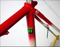 Rear spacing on the early 90's Gazelle framesets where set to 130mm, making them a perfect candidate for 8, 9, or even 10 speed rear clusters. This frame does differ from the earlier models in that it does not have the dutch style wrap around seat stay treatment, but instead has a socket type of lug with additional gazelle pantographing. |