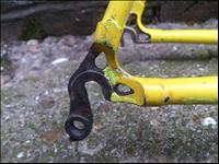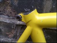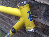 This is a frame from a fairly obscure, but well thought of, frame producer that never really got off the ground- although, the founder eventually achieved success after starting over again under the new name, Enigma. Although not badged as such, I believe the Teknobike model to be built with Reynolds 653 tubing. Frame geometry and tight triangles make for a very responsive ride. From the model name to the glaringly bright paint job, this frame is very 90s. More attractive are the ornate spearpoint lugs it was built with- although sadly these are largely unused on my frame example due to its small size making it impossible to use lugs on most of its joints! |