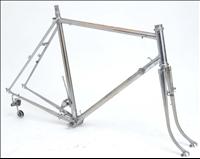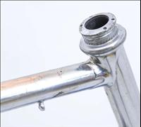 From eBay Auction by rhclassics: Superb example of a late 40s frame (early bikes like this can't be exactly dated), fully chromed. Check out the wonderful details, like for ex the diamond shaped reinforcement at the FD, cable guides for rear brake cable, pump pegs, cable guide behind seat post, braze-ons for rear right stay protector, dropouts, Cyclo RD support, dynamo braze-on etc etc. Quite simply stunning if you compare if with almost any other bike of this vintage. Chrome was expensive post-war, and reserved for the best bikes that the Herse workshop was turning out.