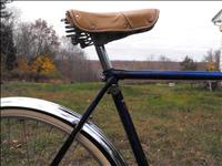 The rear drop-outs are stamped with a single hole for mounting the fenders, there are no front drop-outs, the fork ends are crimped flat with stamped cut-outs for the front axle.