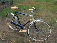The rims are double wall chrome steel 26 x 1 3/8 Dunlops. 32 spokes in front with an unmarked hub, a 40 spoke rear with a Sturmey Archer 3 speed coaster brake hub marked -CW 55 1