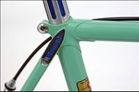 One of the giants in Italian frame building, Bianchi built (and still builds) bicycles ranging from top end racing machines down to commuter and city bikes. Bianchi's trademark color, Celeste, is nearly instantly recognizable by cyclists the world round. There are many stories about how the color came about, and the hue has changed some over the years.