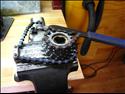 This unique tool is clamped in the vise and holds the largest cog on a freewheel so one can unthread the smallest cog(s) with ease. The freewheel just slips over the round puck, doesn't thread on.