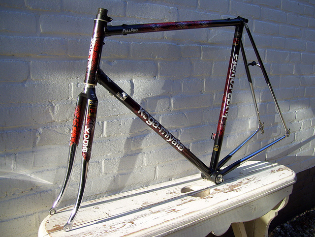 Original Tulip computers pro team frame. This paint in combination with chromed fork and stays was never available to the general public. The decals are extra large and there are more: on blades and seatstays.