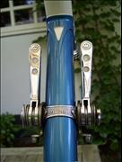 Much in common with Gazelle Champion Mondial A-frame. No coincidence. Bertus Slesker initially worked for Locomotief. Gazelle acquired Locomotief in '67 and after the that the Gazelle race program took really off with the legendary Champion Mondial models. Bertus built this frame for Presto. A lot resemblance with the Champion Mondial A-frame. Distinctive characteristics are: - more filing done on the lugs - the bottom bracket lug/shell is al little more decorative - absence of the brake butterfly - Presto fork Also the A-frame normally did not come with chrome, contrasting headtube and enamelled cut outs. This was optional.