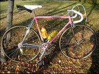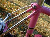 19983 Tommasini bicycle. Campagnolo Super Record equipped. Frameset has the mid 1980's Tommasini "Air" fork style.   Bike has been repainted pink and I cannot verify if this is the original color. It is a professional job and was done in California before I bought the bike.