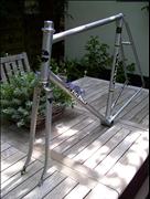 Reynolds 531 butted tubing Campagnolo drop outs 'KZ' engravings in stay tops, wrap over stays chromed crown and drop outs |