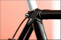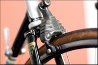 The frame is build with Reynolds 531 tubing. I think the lugs used are supplied by Cinelli. They look modified to me with their many cut outs. The seatstays are of the 'wrap around' type and show the "KZ" engravings. Dropouts by Campagnolo. Rear really long. |