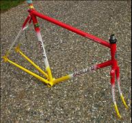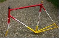 Rear spacing on the early 90's Gazelle framesets where set to 130mm, making them a perfect candidate for 8, 9, or even 10 speed rear clusters. This frame does differ from the earlier models in that it does not have the dutch style wrap around seat stay treatment, but instead has a socket type of lug with additional gazelle pantographing. |