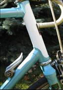 The workmanship, around the lugs, is very good and the concave seat stay tops add even more visual appeal to an already appealing bicycle. The soft pastel aqua color, coupled with the white head tube, add to the quality and vintage appeal of this great old bike.