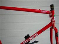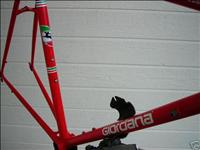 Giordana cycling cloths were/are imported and distributed by Gita Sporting Goods. They were also the sole US importers for Pinarello, Merckx, DeRosa, and Pegoretti frames. Gita chose Pegoretti, a small high class Italian builder to produce their Giordana house brand frames. This frame is made with Mannesmann Oria ML25 butted tubing which is similar to Columbus Nivachrome. The paint and workmanship on this frame is excellent. At the time this model sold for mare than a Merckx Sl or DeRosa frame.