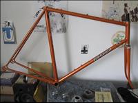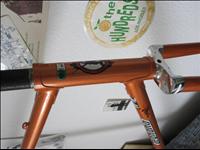 A major name in Italian racing bicycles, the Legnano name has been around since the early 1930's if not earlier. Their frames are often painted a distinctive bright metalic green, and the head badge depicts an warrior holding his sword held high in celebration. Specifically it depicts Alberto da Giussano celebrating the triumph at the battle of Legnano in 1176 over the German rulers who had been ruling over the lands for centuries. The brand itself produced a very wide range of models from the high end equipped with Campagnolo down to Hi-Ten built frames with lesser components.