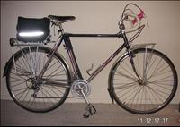 This is a 1993 model.  The frame is made of Hardlite FM-1 Splined, triple butted Chrome Molybdenum tubing manufactured by Miyata Industry Co. Ltd.  The fork is made of Hi-Manga HM-2 Special Manganese steel tubing also manufactured by Miyata. There is a bottom bracket generator activation lever on the rear upper section of the seat tube.  On the example pictured, that lever operates the front derailleur, as the bike is set up with a Sachs 7x3 rear hub.