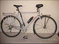 This bike is every bit a touring bike as much as a hybrid, with a wheelbase of 106.7 cm and full braze-ons, including mid-fork rack mounts.  The frame is made of Tange Infinity tubing of Univega's design called Bi-Axial Power Oval Design.