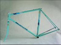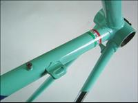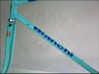 One of the giants in Italian frame building, Bianchi built (and still builds) bicycles ranging from top end racing machines down to commuter and city bikes. Bianchi's trademark color, Celeste, is nearly instantly recognizable by cyclists the world round. There are many stories about how the color came about, and the hue has changed some over the years.