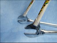 Columbus SL tubing w/ Columbus dropouts. Brazed top tube / seat tube / seat stay junction, rest of the frame is lugged. Pictured example had the fork drilled for a front brake only (and probably wasn't used).