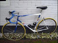 Highly refined professional roadbike by Panasonic of Japan. Full Tange Prestige tubing. Lugged constuction, handbrazed with silver. 28.6mm diameter tubing for full front triangle for added stability in sprinting, cornering and descending. Own investment cast frameparts.