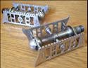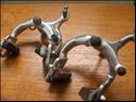 In the forties Joe Hobbs of Barbican introduced a range of high end components under the brand name ‘Lytaloy’. These may have been manufactured elsewhere in the Sterling Works factory, thus capitalising on the considerable capacity and expertise remaining after the war effort. There were very efficient and stylish brakes and levers, pedals, alloy cottered cranks, headset and bottom bracket, very light alloy mudguards, and even a pair of handlebars. The pedals were superb, very light, with a solid alloy centre, and the equal of Campagnolo’s pedals introduced 10 years later. With the exception of the cranks, which had their problems, these components were highly regarded by clubmen, and were to be seen on rival builder’s top end bikes. More can be read about this brand here: http://www.classiclightweights.co.uk/hobbs.html |