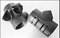 RGF Bottom Bracket Shells - not uncommon on 1970s bikes. Mine came with a 531 DB frame and fork with Campagnolo dropouts. Interesting process, explained by "Dave Moulton" on BikeForums as follows..."I’m pretty sure RGF bottom bracket shells were made in France. I used them on most of the frames I built in England through the 1970s, and bought them from Ron Kitching who imported them along with the Prugnat lugs. These BB shells were “Bulge Formed” which is an interesting process and I will explain for the benefit of those who have not heard of this. A steel tube with the diameter and wall thickness of a bottom bracket shell is fed into a special machine. A mold clamps around the tube that has internal sockets that form the down tube, seat tube, and chainstay sockets. The ends of the tube are sealed and hydraulic oil is pumped inside. The pressure causes the steel to blow into the sockets like a bubble. The mold opens, the tube slides sideways to clear the mold and a saw cuts it off. The machine repeats whole process automatically. In a separate process the sealed ends of the sockets are machined off making the finished sockets for the tubes. Finally the BB shell is faced and threaded. I used these BB shells because they were the best available at that time. By the late 1970s investment cast bottom brackets, which are far superior, became available. I’m sure the bulge forming process is still being used for lower end bikes." I have added better pictures of these brackets. It was common at Raleigh SBDU to make the brackets lighter by cutting 4 slots into the bottom, and that is where these brackets come from (updated by: wiel). |